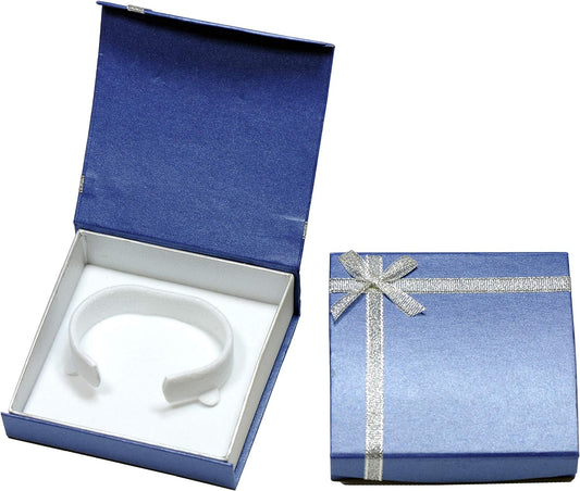 12 Piece Wholesale Pack Magnetic Bangle Gift Box Assorted Color with Bows and Deluxe Velvet Interior (not Foam) Size 4"(W)*3.75"(D)*0.75"(Front Height)*1.2"(Back Height)