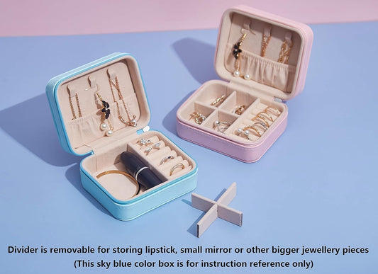 Pink Color Small Travel Luxury Jewelry Organizer Box Premium PU Leather Exterior and Soft Velvet Interior Purse for Rings Earrings Necklaces Gift Women Girls