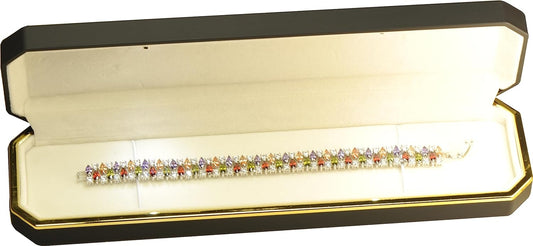 The Jewellery Pak LED Black Bracelet Box for Engagement, Wedding…Luxury Octagonal Design with Gold Trim LED Bracelet Necklace Chain Jewelry Gift Holder Box with Light for Men for Women