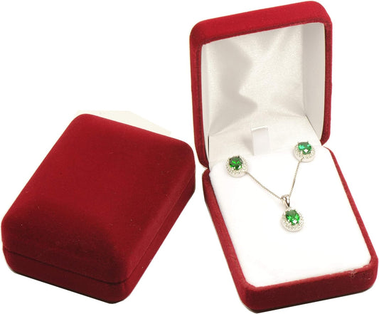 Wholesale 6 Piece Luxury Velvet Multiple Use Earring Necklace Pendant Jewelry Gift Box Burgundy Red Color Soft Touch Premium Velvet Material Size 2.35〞(W)*3.15〞(D)*1.35〞(H) with an Individual White Packer Box