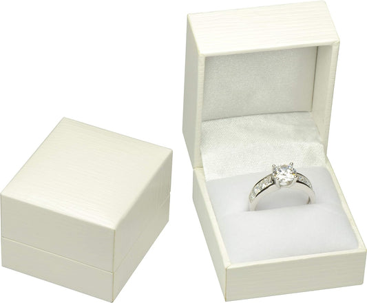Wholesale White Color Ring Box Luxury Textured Leatherette Exterior and Satin Top Material Ring Gift Box for Wedding, Proposal, Engagement, Birthday, Valentine' Day, Mother's Day, Christmas.