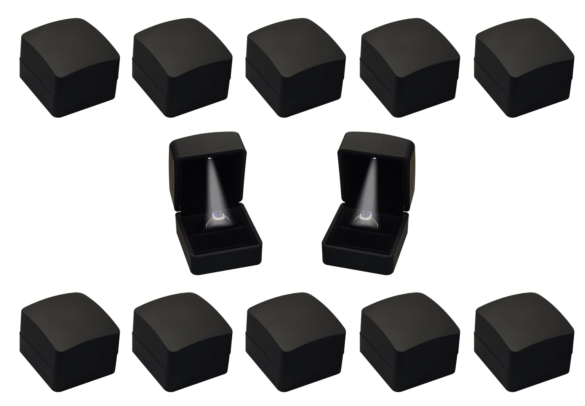 - HIGH QUALITY CRAFTMANSHIP FINISH: This LED wedding proposal ring gift box is well made with high quality matte black color baking varnish finishing, which will make your jewelry look luxury and special when you present it to your sweet heart.(jewelry not included)