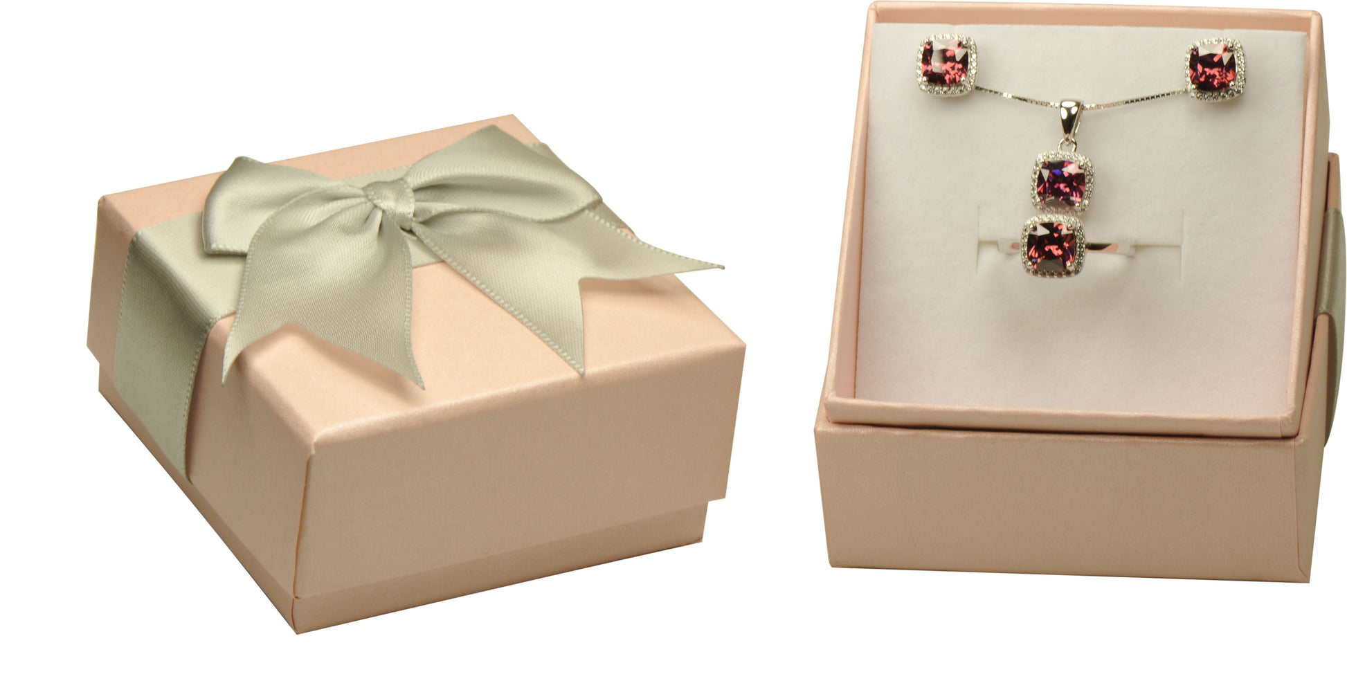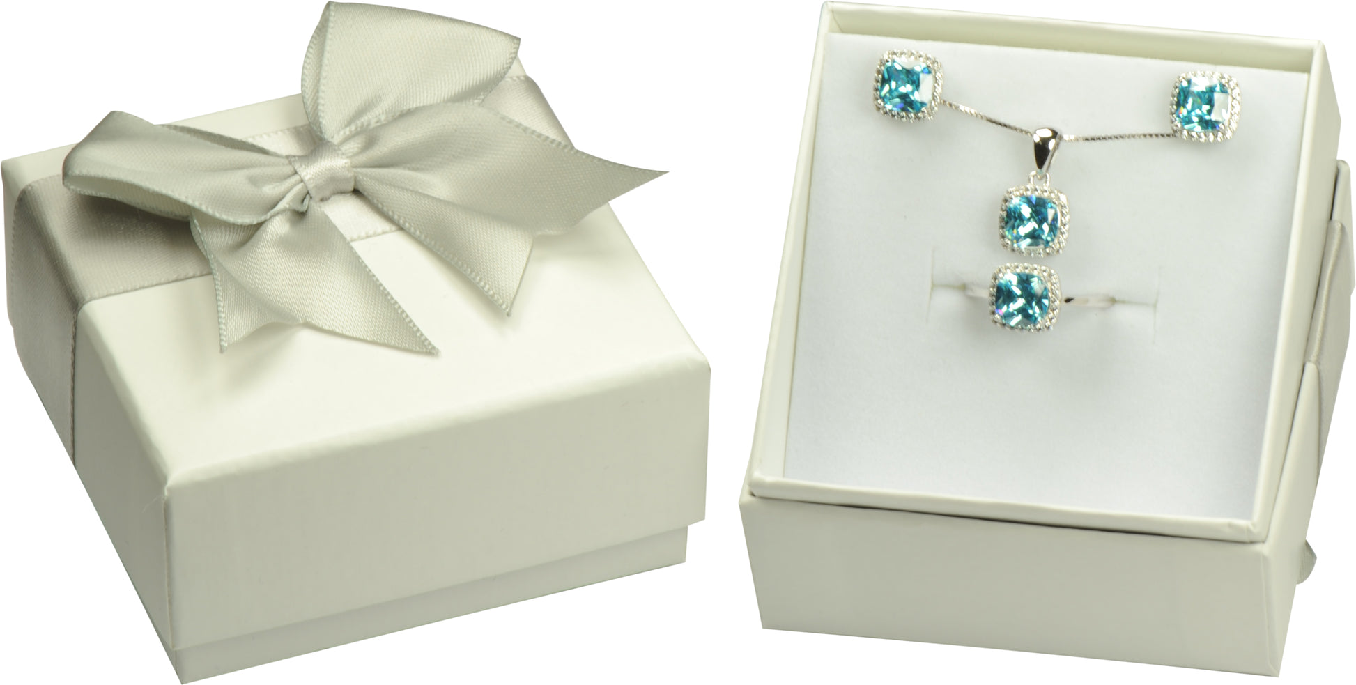 Wholesale Bulk Premium Cardboard Multiple Use Ring Earring Necklace Pendant Set Jewelry Gift Box with Beautiful Quality Bows Box Size 2.56〞(W)*2.56〞(D)*1.38〞(H)