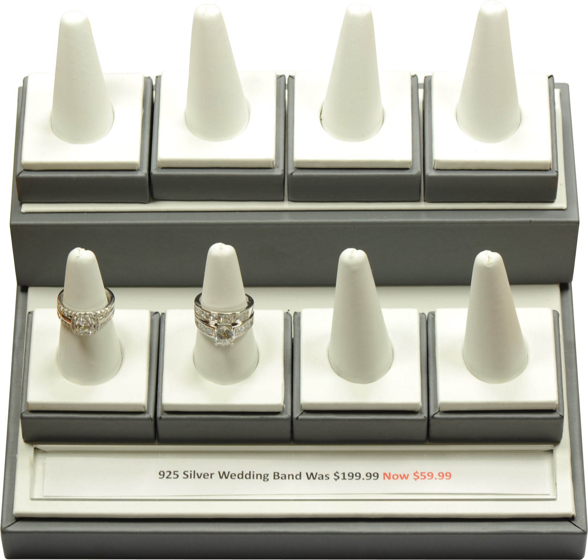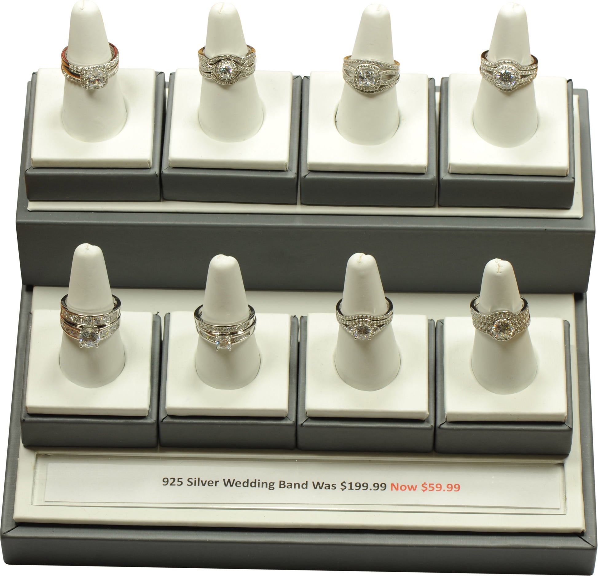 - Premium PU LEATHER exterior finger stands combined with two piece solid wood riser platforms compliments your precious rings a luxury and gorgeous looking. Perfect ring stand displays for jewellery store use and trade show use.