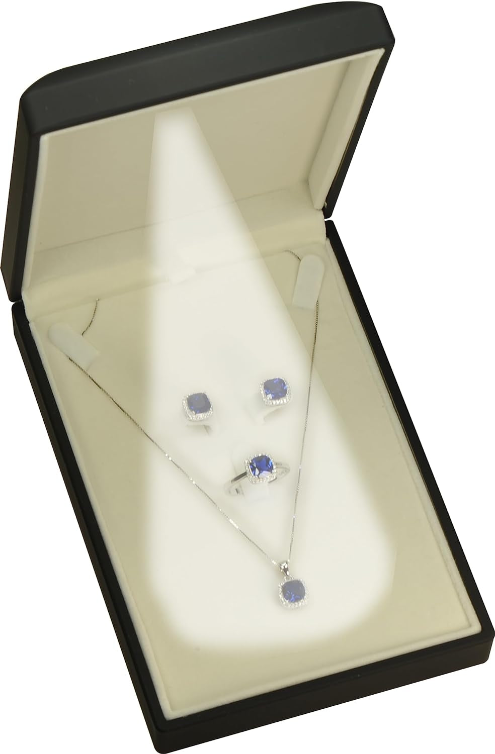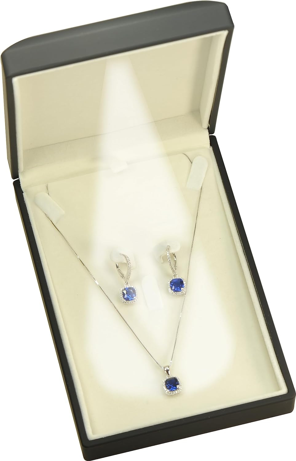 3、RICH CREAM WHITE COLOR velvet interior compliments this necklace earring gift box for any jewelry design, for clear diamond necklace and earrings, sapphire,ruby,emerald necklace earrings...