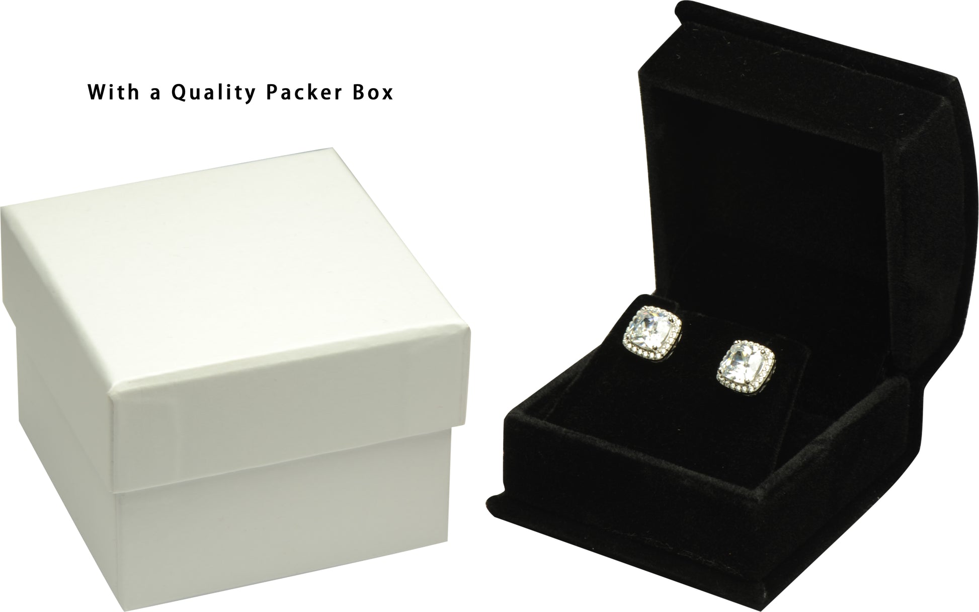 Wholesale Bulk Luxury Velvet Earring Jewelry Gift Box with an Extra Individual White Packer Box Size 2.15〞(W)*2.15〞(D)*1.65〞(H)( Jewelry not included)