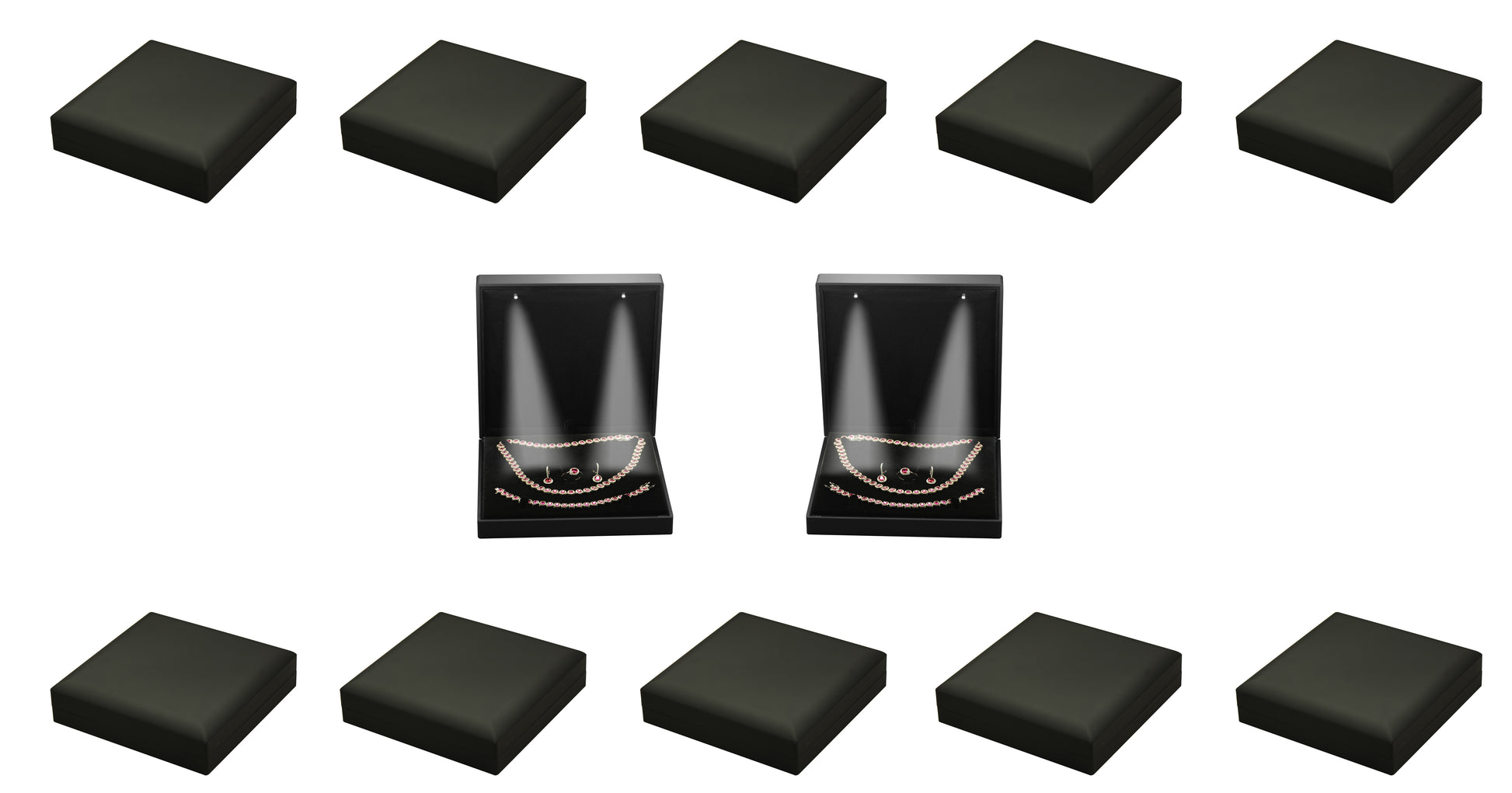 - HIGH QUALITY CRAFTMANSHIP FINISH: This LED big necklace chain jewelry gift box is well made with high quality matte black color baking varnish finishing, which will make your jewelry look luxury and special when you present it to your sweet heart.(jewelry not included)