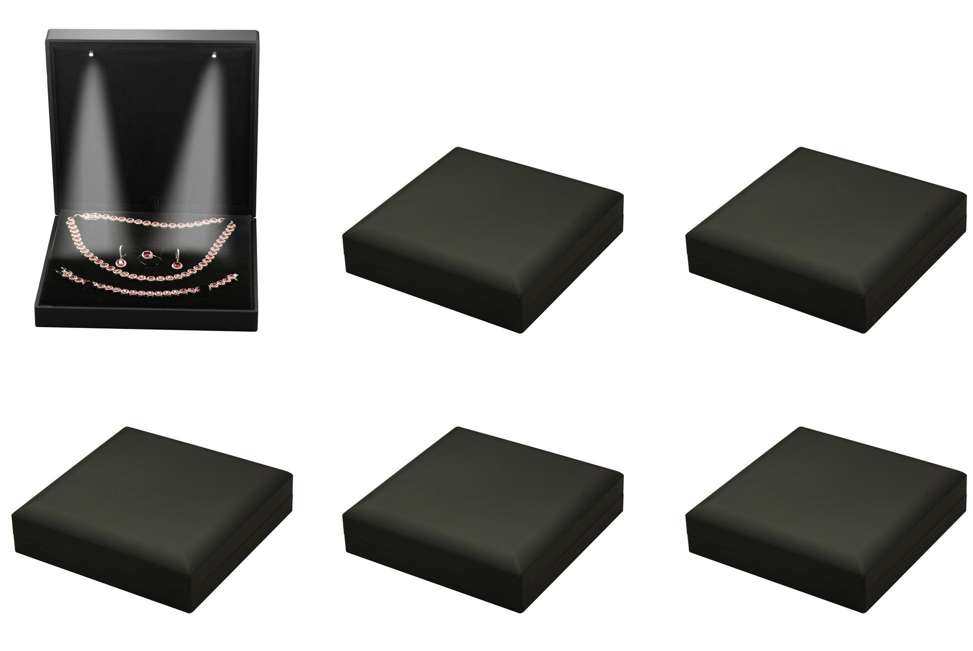 Wholesale Led Black Big Necklace Set Jewelry Gift Box for Wedding, Birthday, Valentine' Day, Mother's Day, Christmas...Luxury LED Necklace Chain Ring Earring Bracelelt Set Gift Box with Light