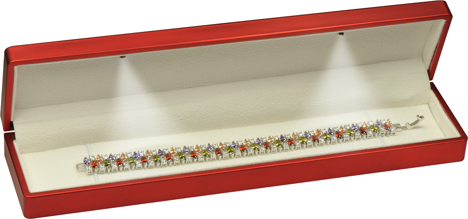 - Mounted on top with a perfect angle, this LED light bracelet watch jewelry box brings your special jewelry a glowing and sparkling looking and creates a romantic atmosphere at the exciting moment