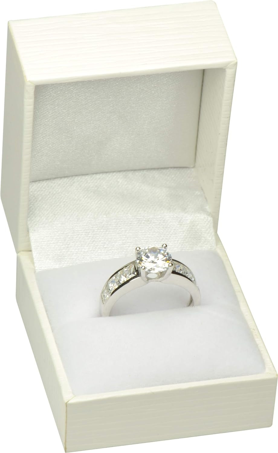 Wholesale White Color Ring Box Luxury Textured Leatherette Exterior and Satin Top Material Ring Gift Box for Wedding, Proposal, Engagement, Birthday, Valentine' Day, Mother's Day, Christmas.